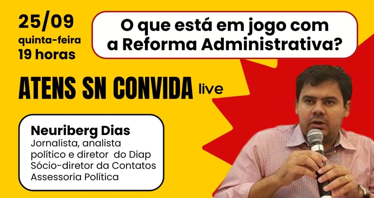 O ATENS Sindicato Nacional realiza na quinta-feira (25/9), às 19h, uma live fundamental para o debate sobre a Reforma Administrativa, que representa uma grave ameaça ao serviço público e aos direitos das servidoras e servidores. Para ajudar a compreender os impactos dessa proposta, teremos como convidado Neuriberg Dias, jornalista, analista político e diretor do Departamento […]