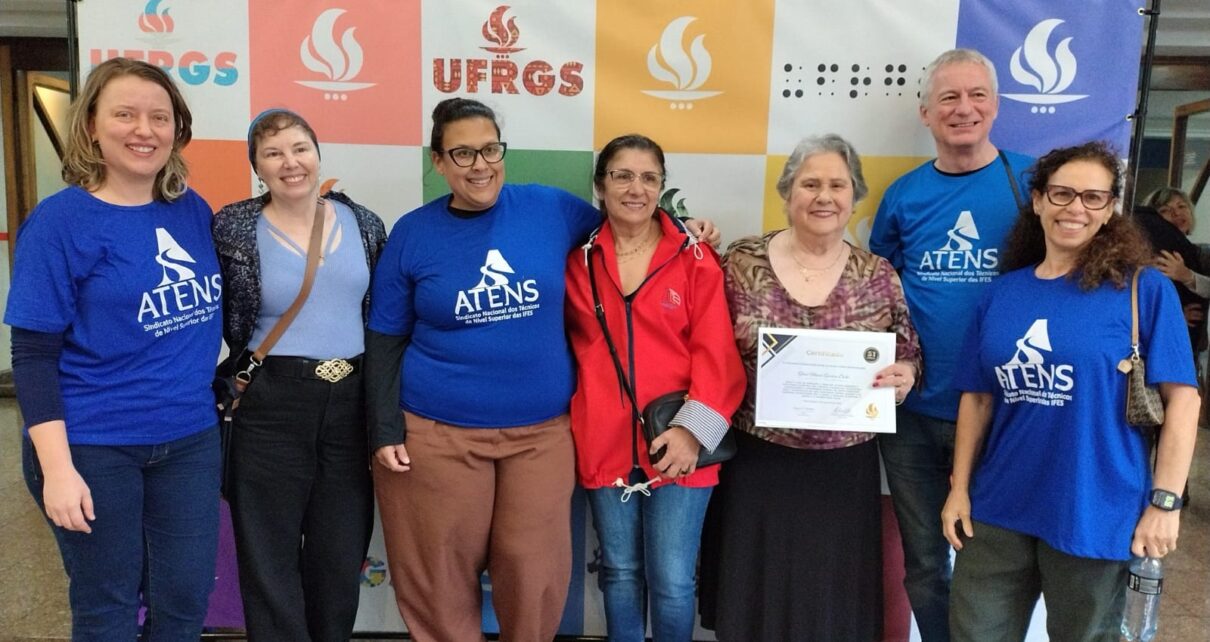 Centenas de servidores subiram ao palco do Salão de Atos na tarde desta segunda-feira (5/10) durante cerimônia de reconhecimento aos anos de trabalho dedicados à Universidade. A primeira edição do evento Orgulho de Ser UFRGS, que teve a ATENS UFRGS Seção Sindical entre os apoiadores, reuniu 267 técnicos administrativos e docentes que, em 2025, completam […]