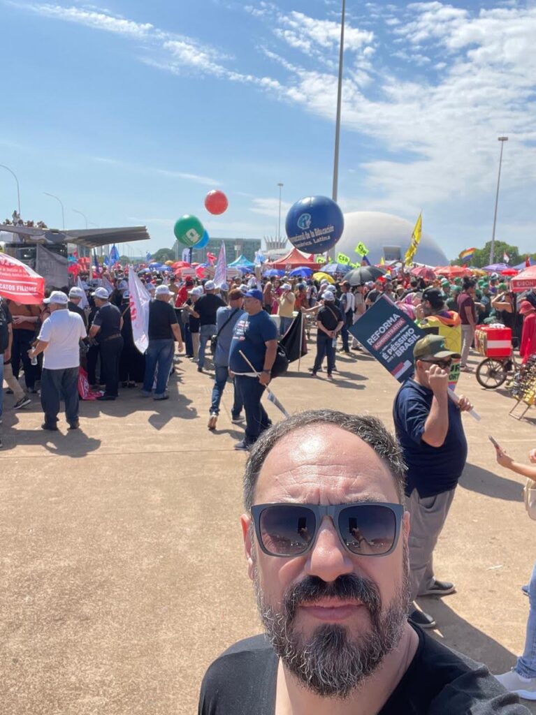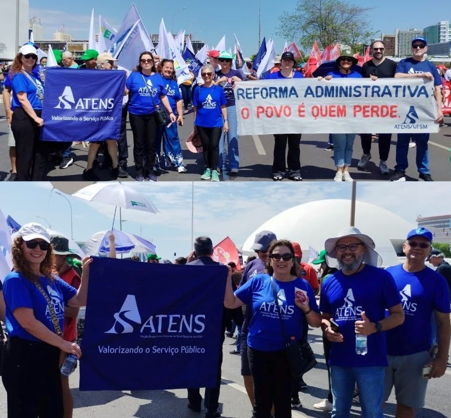 Já nesta manhã, Felipe participou, junto com a delegação composta por 20 filiados da ATENS, da Marcha Nacional do Serviço Público contra a Reforma Administrativa. A concentração teve início às 9h, no Museu Nacional, e seguiu em direção ao e seguiram em direção à Esplanada dos Ministérios, reunindo milhares de servidores públicos federais, estaduais e municipais de todo o país em uma grande mobilização em defesa dos direitos do funcionalismo e da qualidade dos serviços prestados à população.