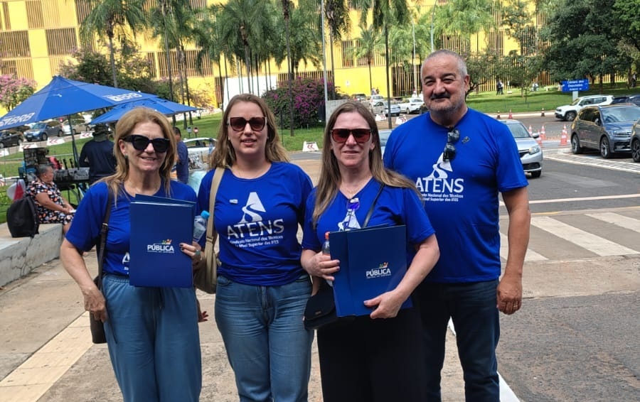 A delegação também esteve presente na cerimônia de sanção do novo Plano Nacional de Educação (PNE), realizada no Palácio do Planalto. O ATENS segue em Brasília, atuando em todas as frentes – no Congresso, nas ruas e nos espaços institucionais – em defesa dos servidores, da educação e do futuro do país.